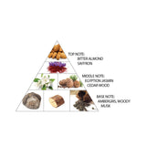 • El corazón de la seducción: El delicado jazmín egipcio se funde con la fuerza del cedro. Un contraste perfecto entre una sensualidad floral innegable y la elegancia imponente de las maderas nobles.