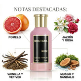• La seducción: Un bouquet majestuoso donde la rosa se funde con jugosos acordes frutales y jazmín puro. Un corazón denso, embriagador y deliciosamente suave que acaricia los sentidos.